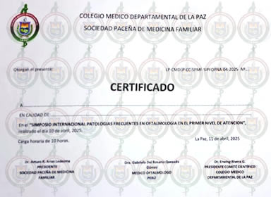 SIMPOSIO INTERNACIONAL PATOLOGÍAS FRECUENTES EN OFTALMOLOGÍA EN EL PRIMER NIVEL DE ATENCIÓN