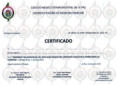 | Referencia: Sociedad Paceña de Medicina Familiar - 68065271 | |