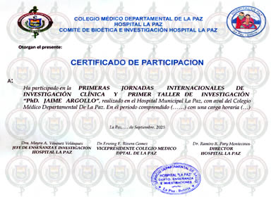 PRIMERAS JORNADAS INTERNACIONALES DE INVESTIGACIÓN CLÍNICA Y PRIMER TALLER DE INVESTIGACIÓN "PHD. JAIME ARGOLLO"
