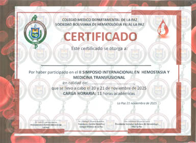 | Referencia: Sociedad Boliviana de Hematología, filial La Paz 74126738-73005921 | |